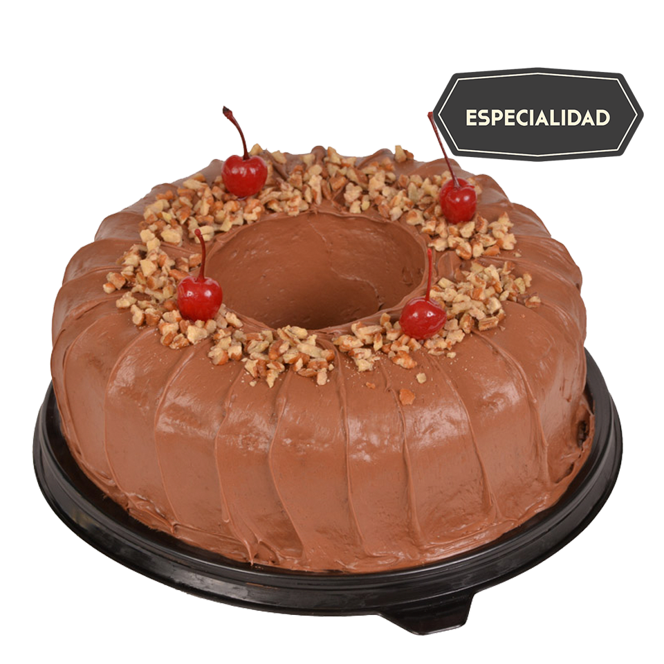 Pan suave sabor chocolate intenso con betún a base de mantequilla y chocolate suizo con nuez tostada