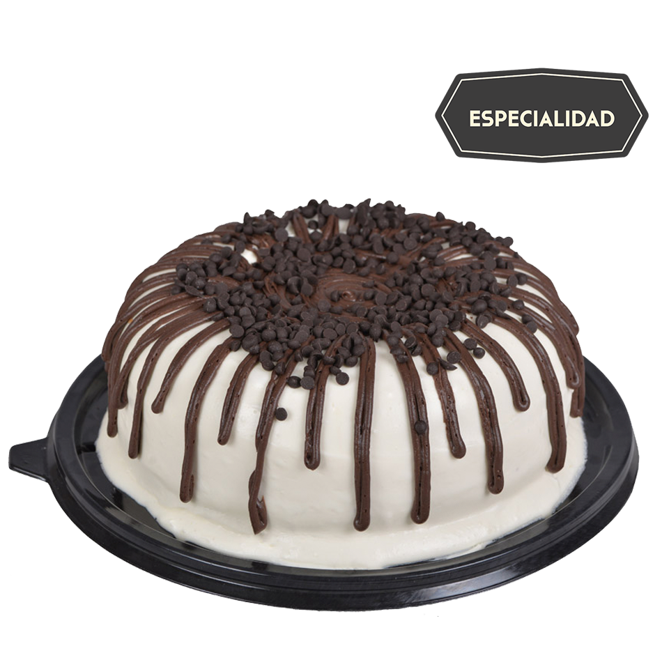 Pan suave de chocolate intenso, con betún a base de queso crema philadelphia sabor vainilla y sabor chocolate con chispas de chocolate.